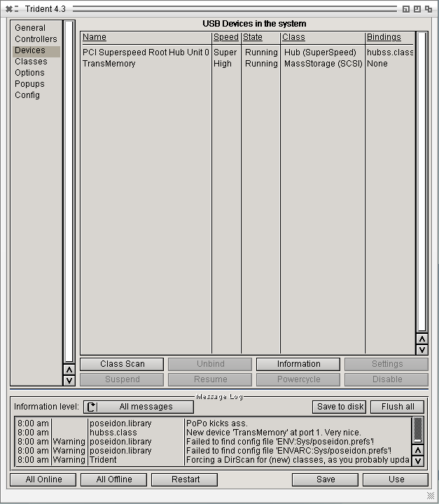 If you would like to test the ISO, you can use the same link to confirm that your USB3 hardware has been detected correctly. To verify this, simply go to Prefs/Trident and list the detected devices as shown in the screenshot!